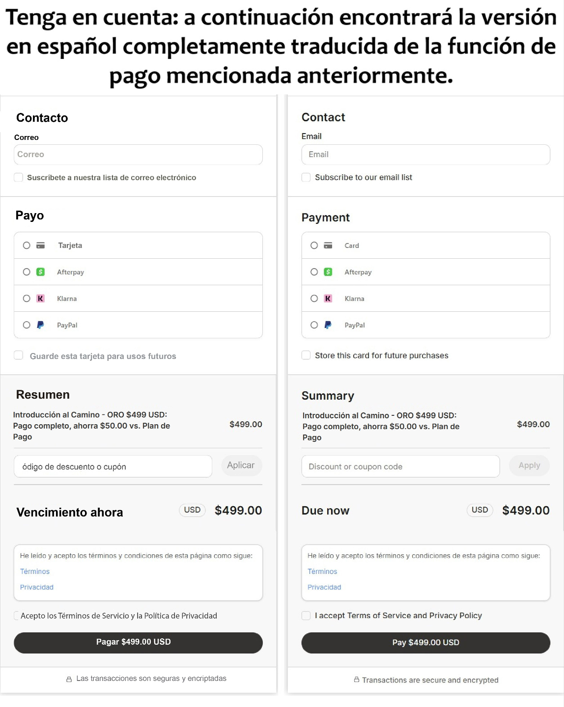 Introducción al Camino - ORO $499 USD: Pago completo, ahorra $50,00 vs. Plan de Pago