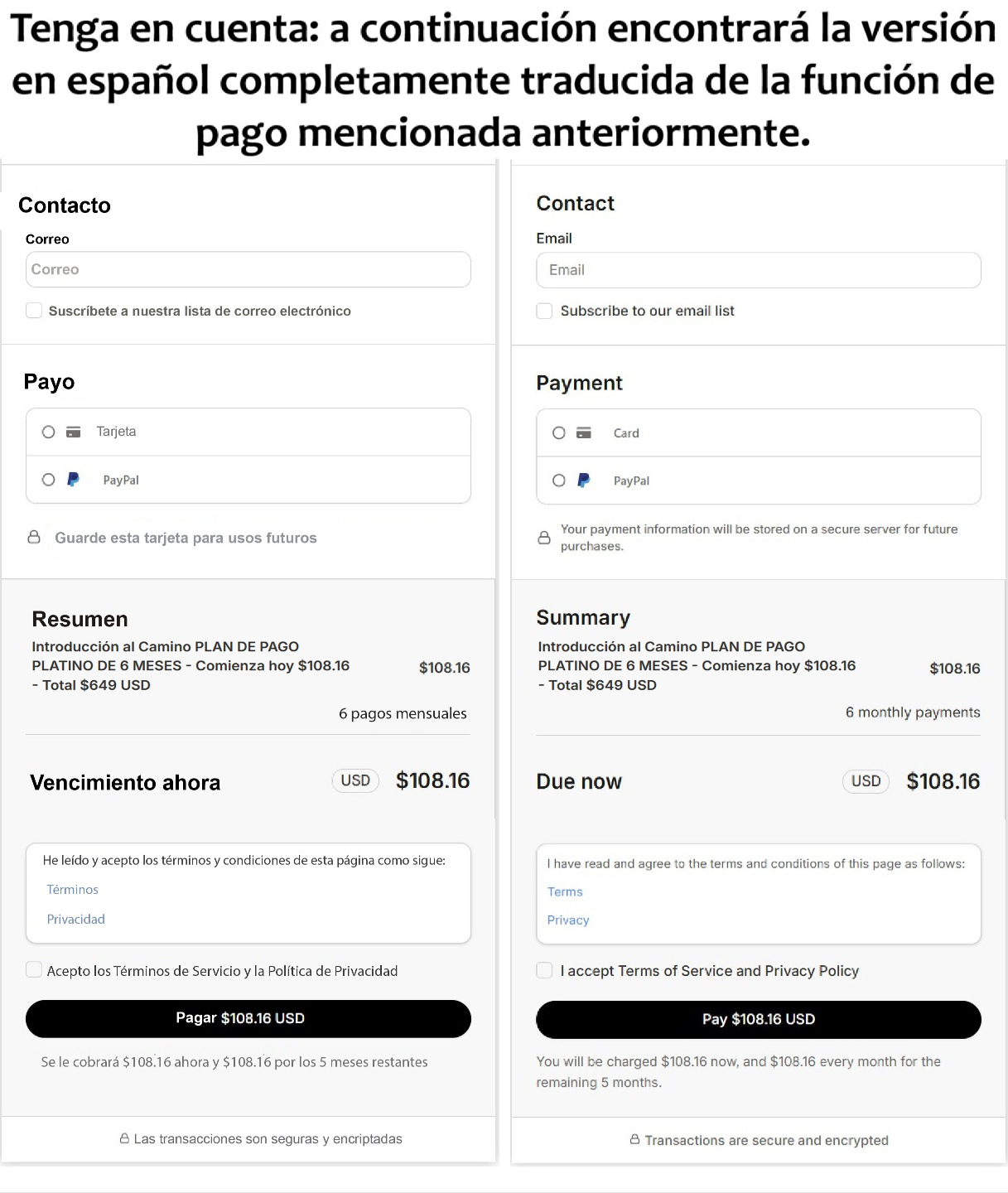 Introducción al Camino PLAN DE PAGO PLATINO DE 6 MESES - Comienza hoy $108.16 - Total $649 USD