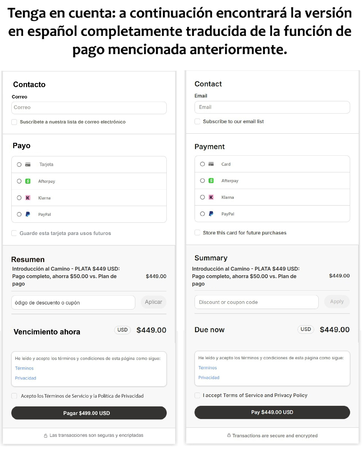 Introducción al Camino - PLATA $449 USD: Pago completo, ahorra $50,00 vs. Plan de pago