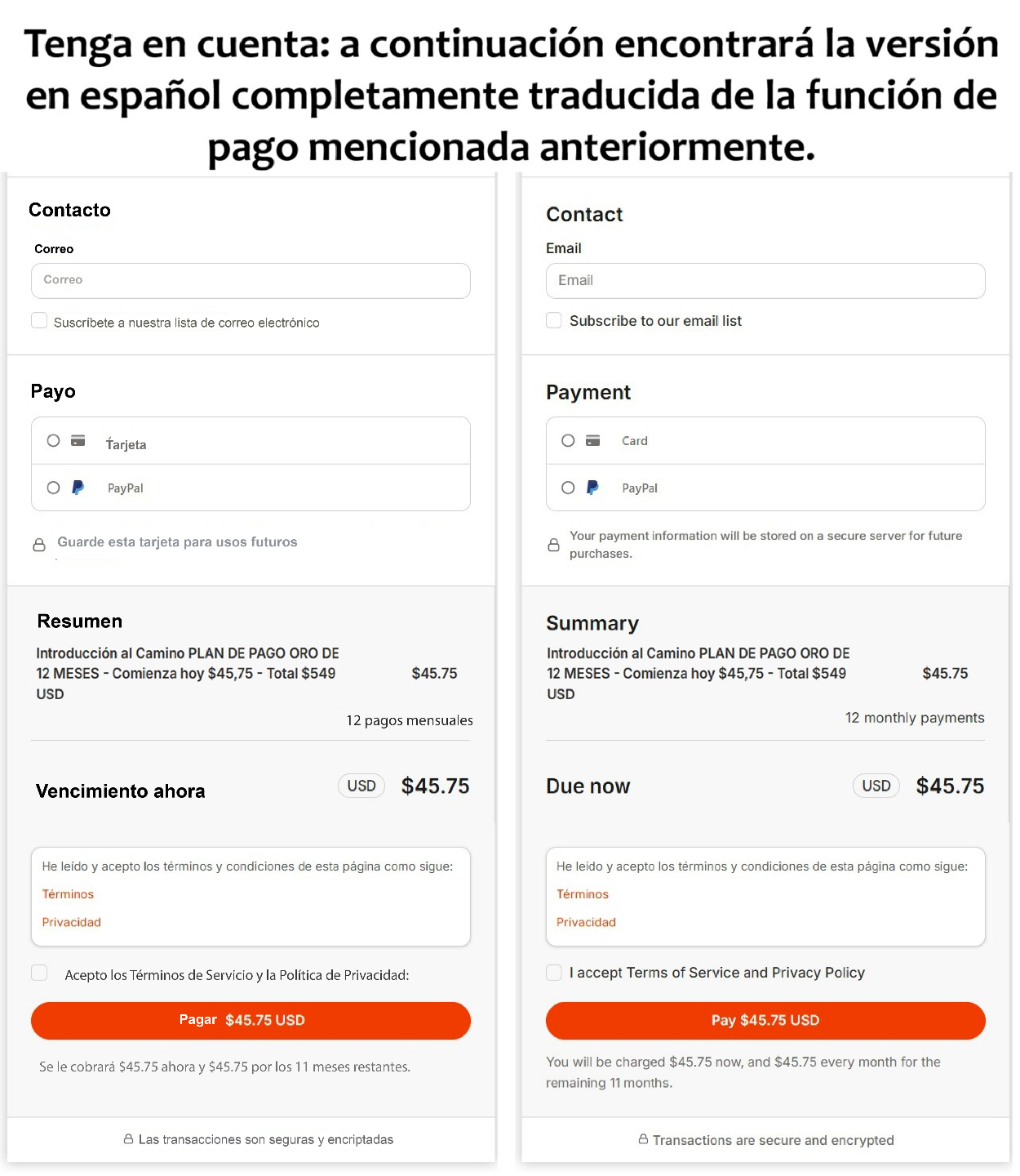 Introducción al Camino PLAN DE PAGO ORO DE 12 MESES - Comienza hoy $45,75 - Total $549 USD